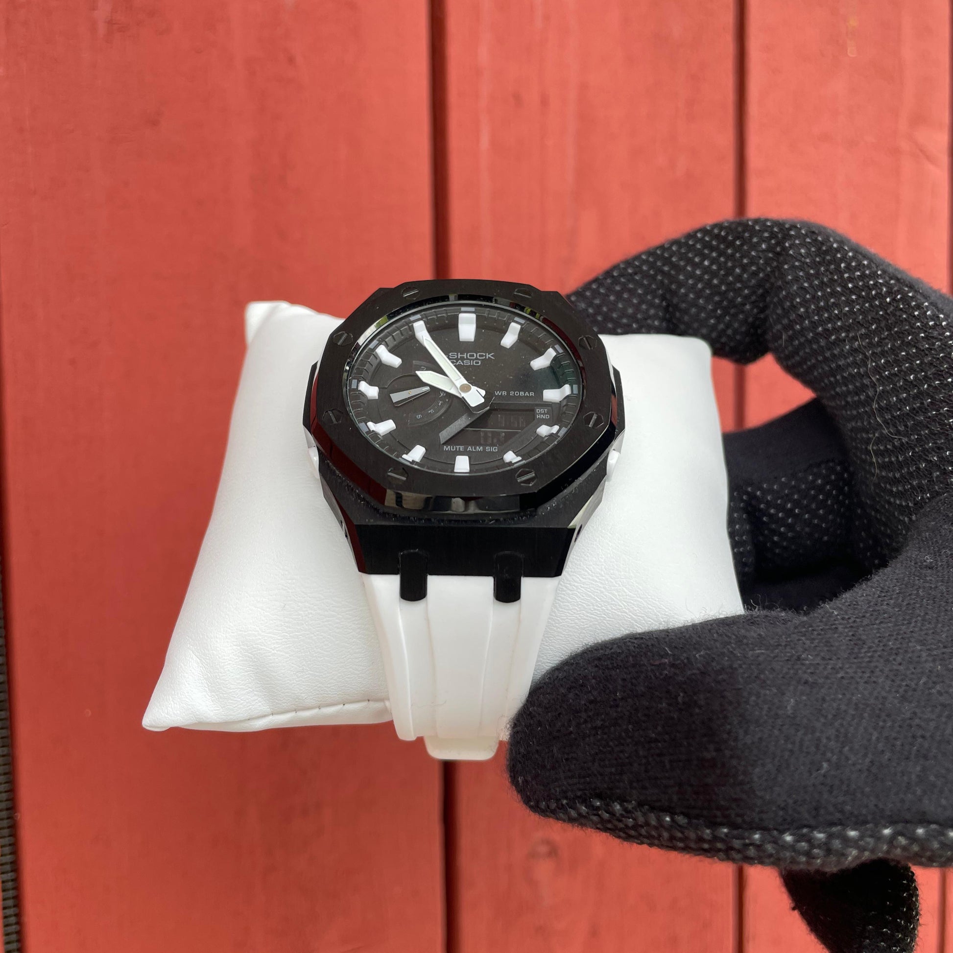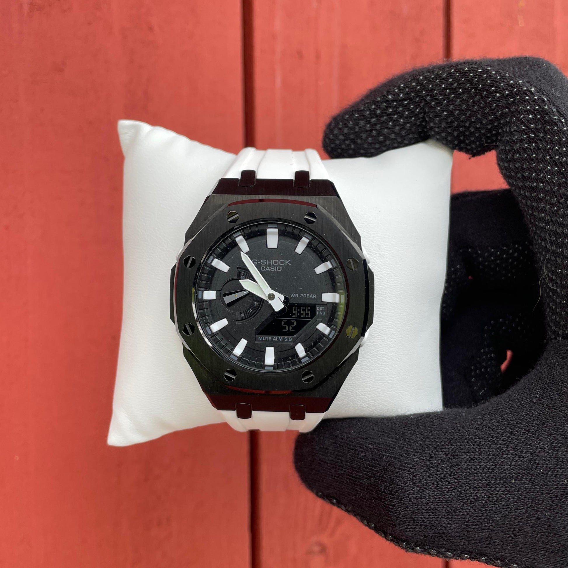 Durability meets style. This customized G-Shock blends tough performance with a refined metal finish and elegant crystal details, making it perfect for both everyday wear and standout moments.